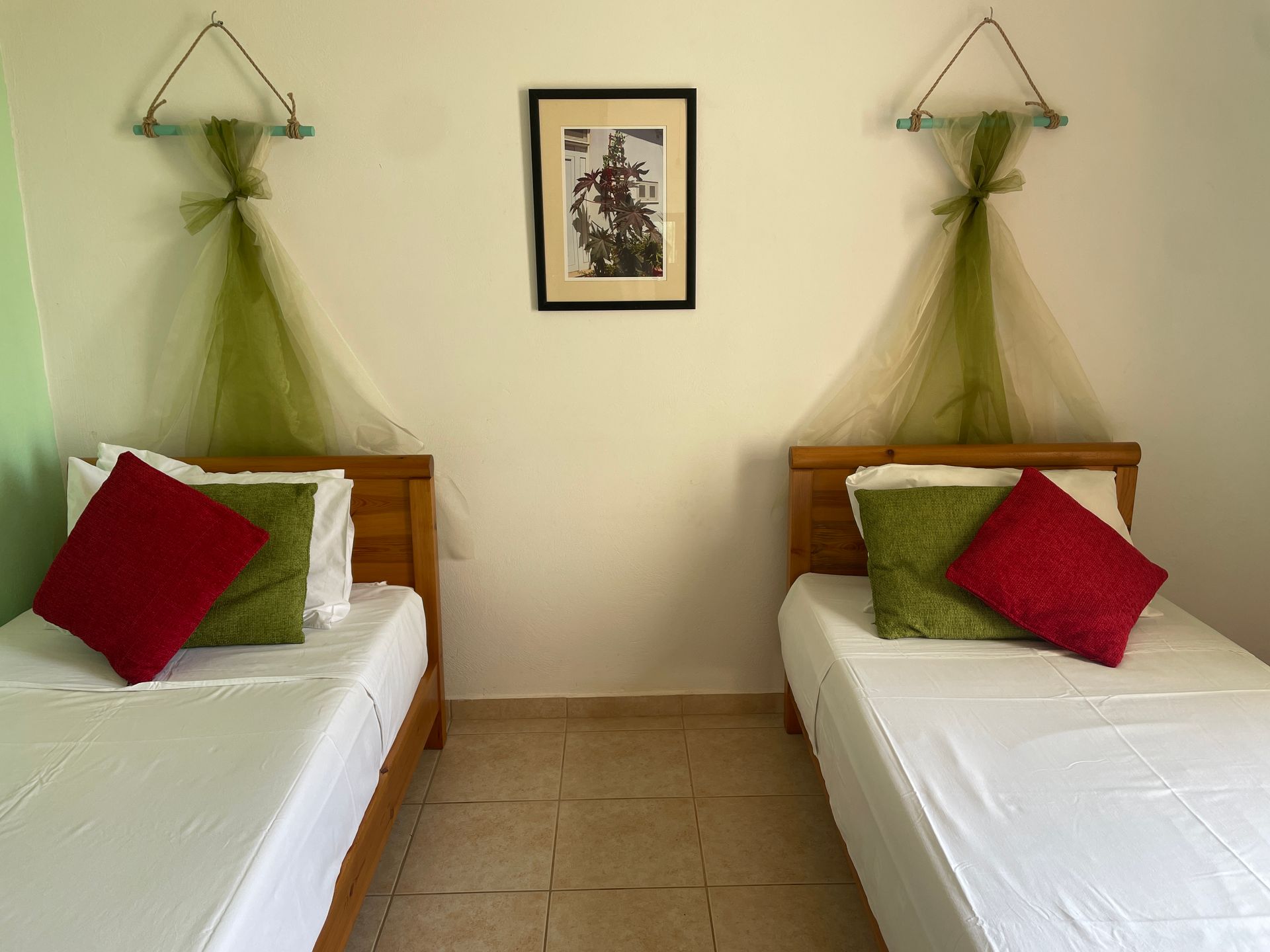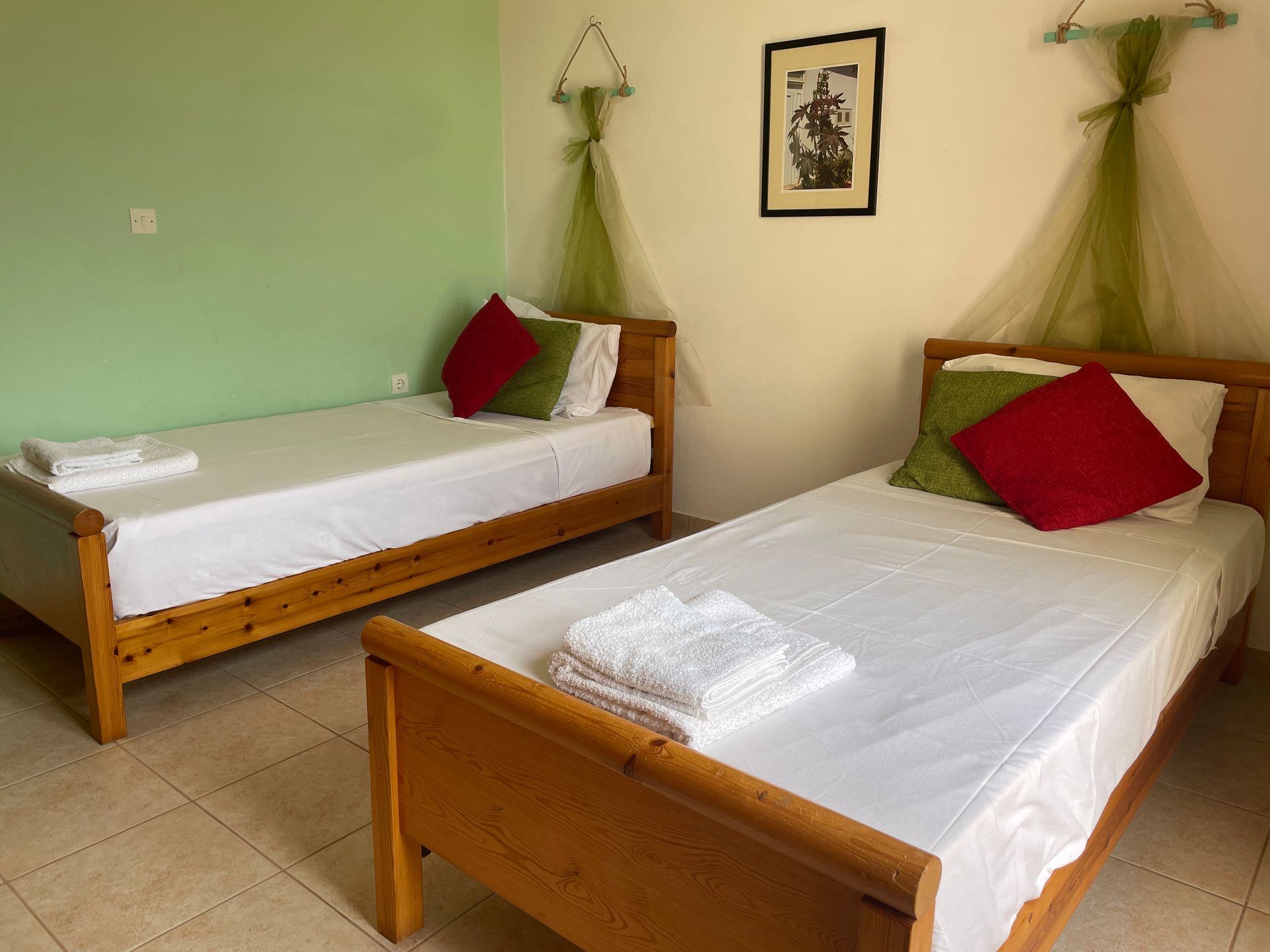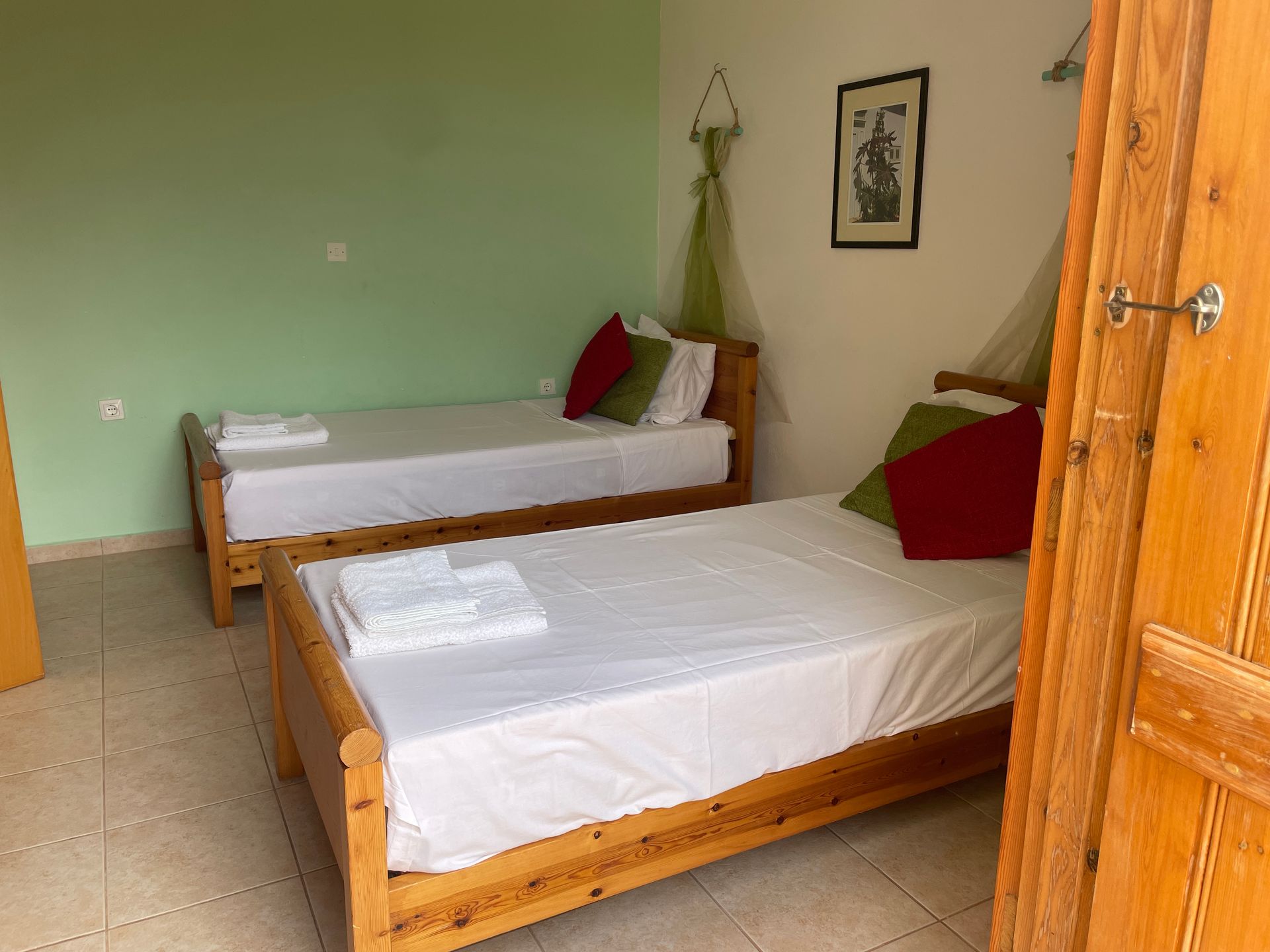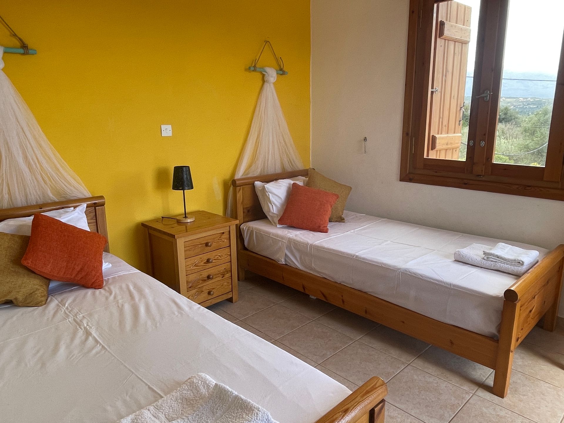 - upstairs: 1 double bedroom & 2 twin bedrooms each with private balcony