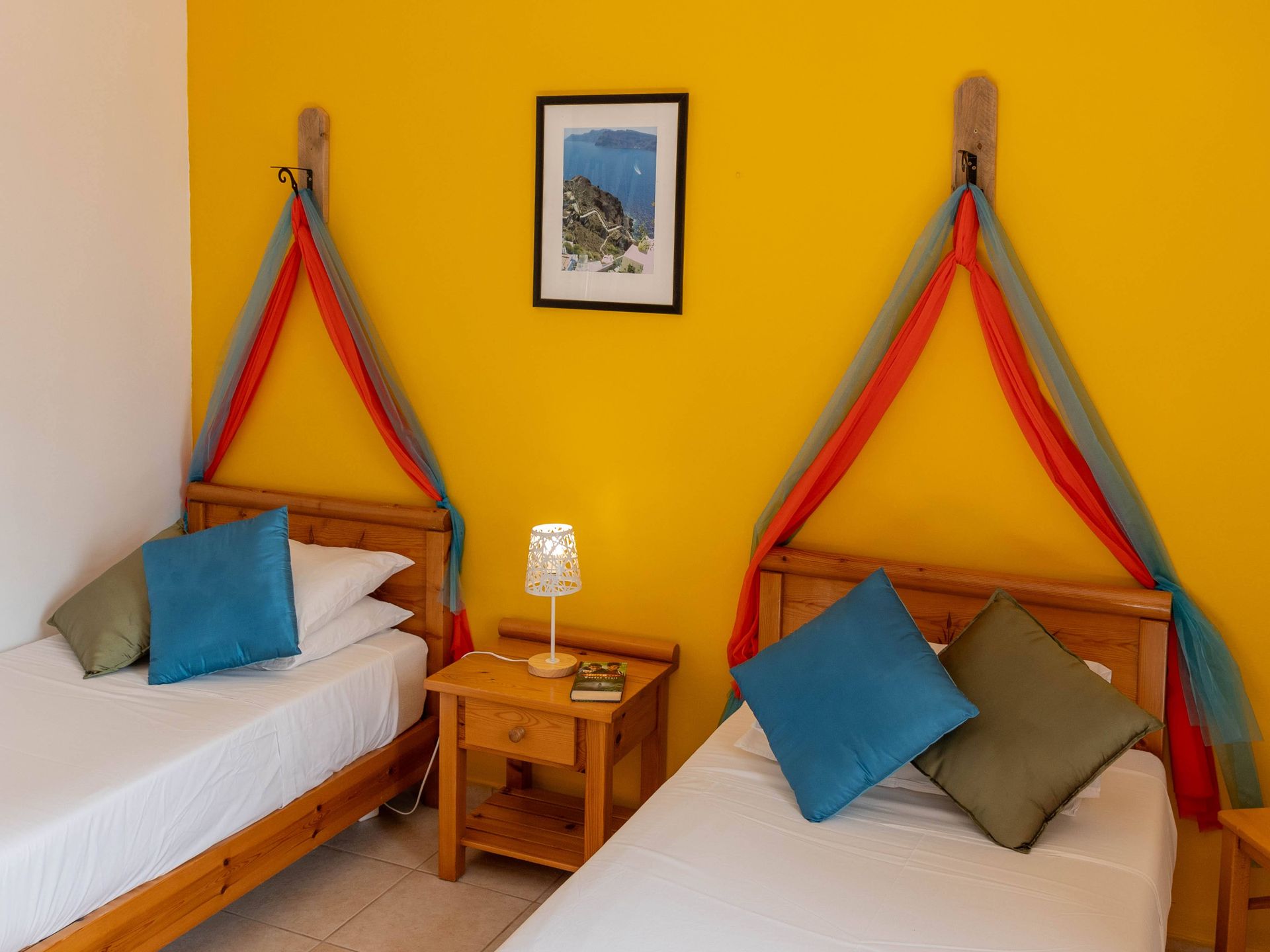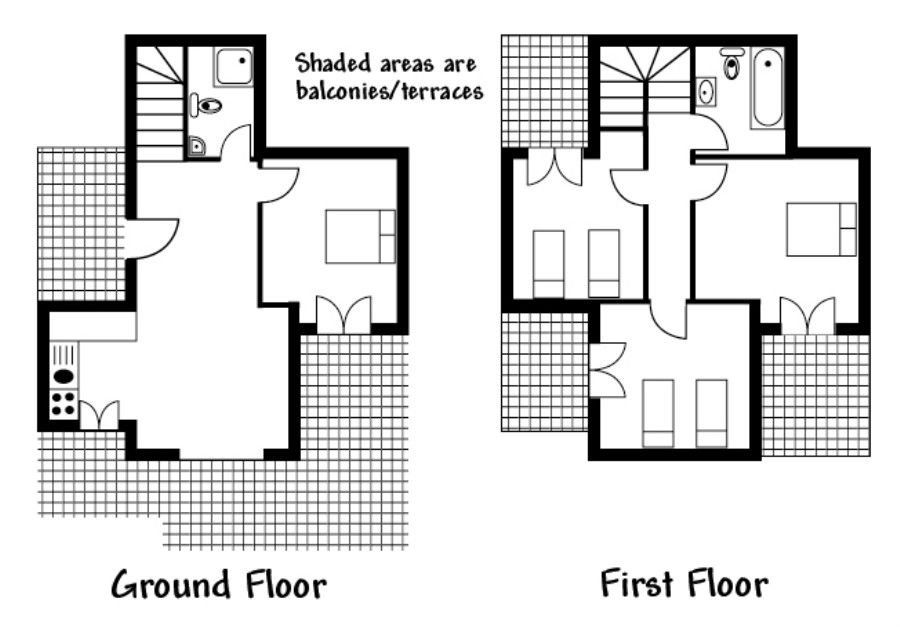 - upstairs: 1 double bedroom & 2 twin bedrooms each with private balcony