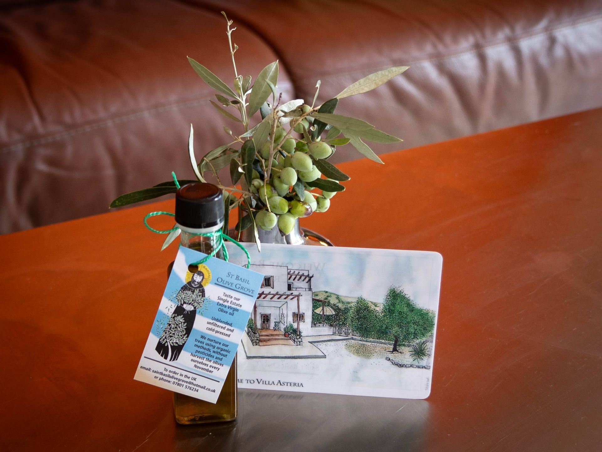 The private villas at Saint Basil Olive grove are between the villages of Almirida and Gavalochory on the north west coast of Crete. They make up a little community of beautifully designed villas nestling among 150 productive olive trees (aged from 3 years to 150 years) around which you are welcome to explore. The owners have a background in contemporary art and design and you will see many unique objects they have created dotted about the villas and outside in the olive grove itself. Everything they have made is from 'found items' in and around the area, re-purposed and re-modelled under the colourful Cretan Peasant Art influence.