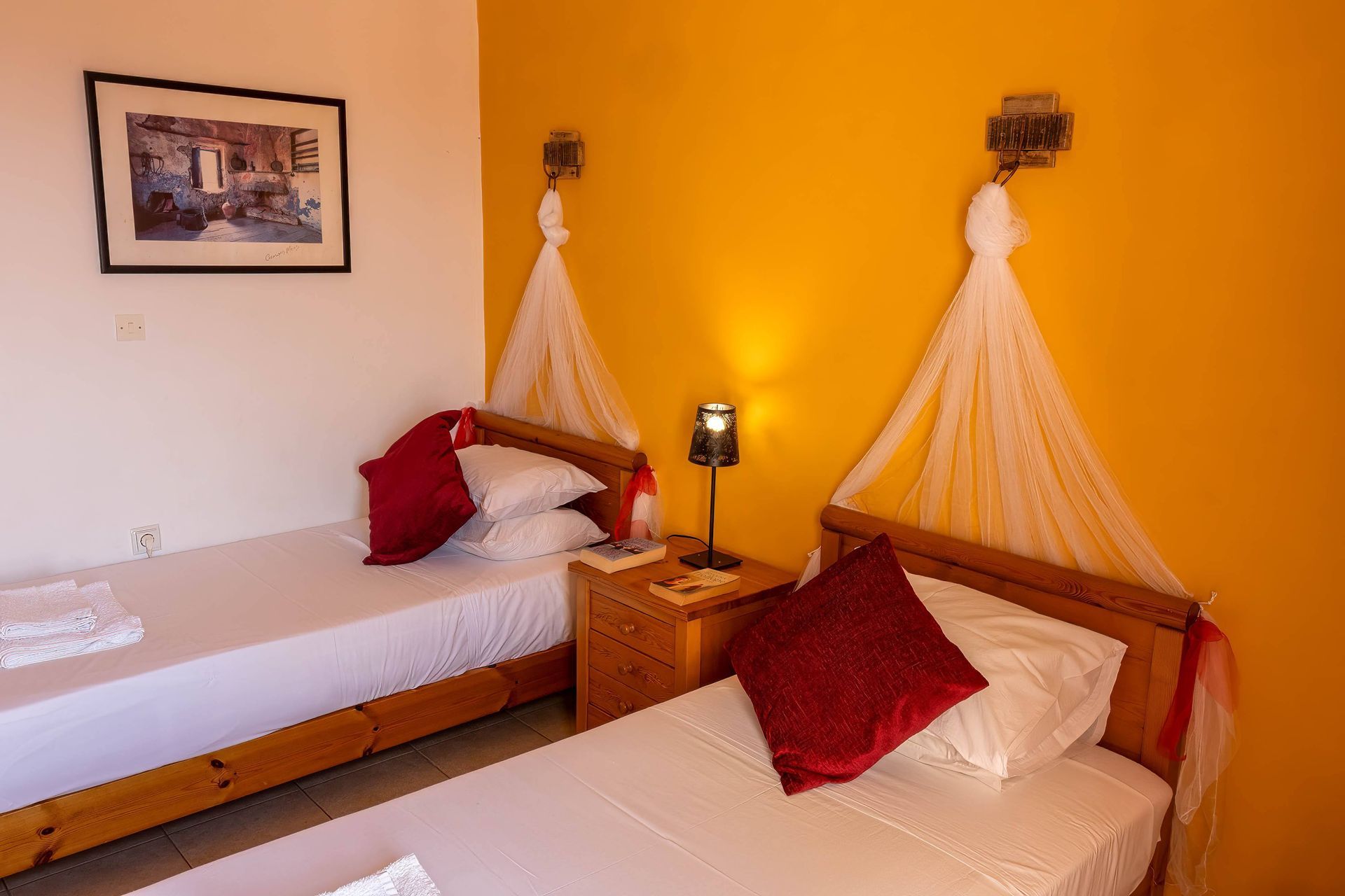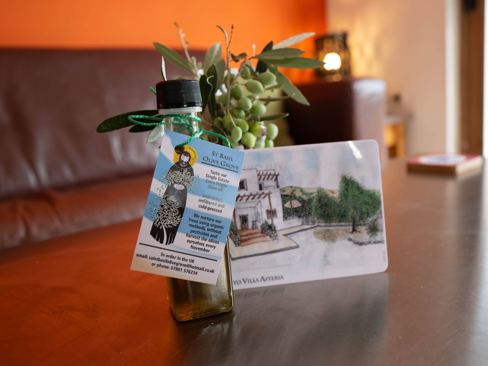 The private villas at Saint Basil Olive grove are between the villages of Almirida and Gavalochory on the north west coast of Crete. They make up a little community of beautifully designed villas nestling among 150 productive olive trees (aged from 3 years to 150 years) around which you are welcome to explore. The owners have a background in contemporary art and design and you will see many unique objects they have created dotted about the villas and outside in the olive grove itself. Everything they have made is from 'found items' in and around the area, re-purposed and re-modelled under the colourful Cretan Peasant Art influence.